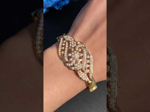 इसमें 22k सोने में बना एक क्लासिक मोती जड़ाऊ खुलने वाला जड़ाऊ ब्रेसलेट शामिल है। 1 लाख के आसपास की कीमत में यह सभी अवसरों के लिए कलाई पर पहनने के लिए एकदम सही विकल्प है।