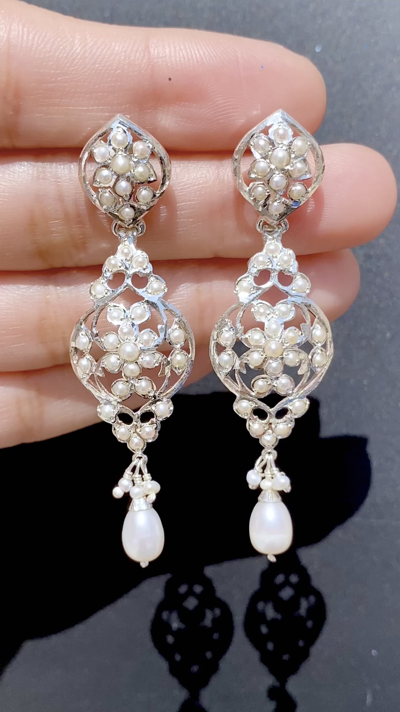 विक्टोरियन डिजाइन के मोतियों से सजी हमारी उत्कृष्ट चांदी की बालियों के साथ कालातीत लालित्य का आनंद लें - विंटेज आकर्षण और समकालीन शैली का एक मनोरम मिश्रण, जो किसी भी पहनावे में परिष्कार का स्पर्श जोड़ने के लिए एकदम सही है।