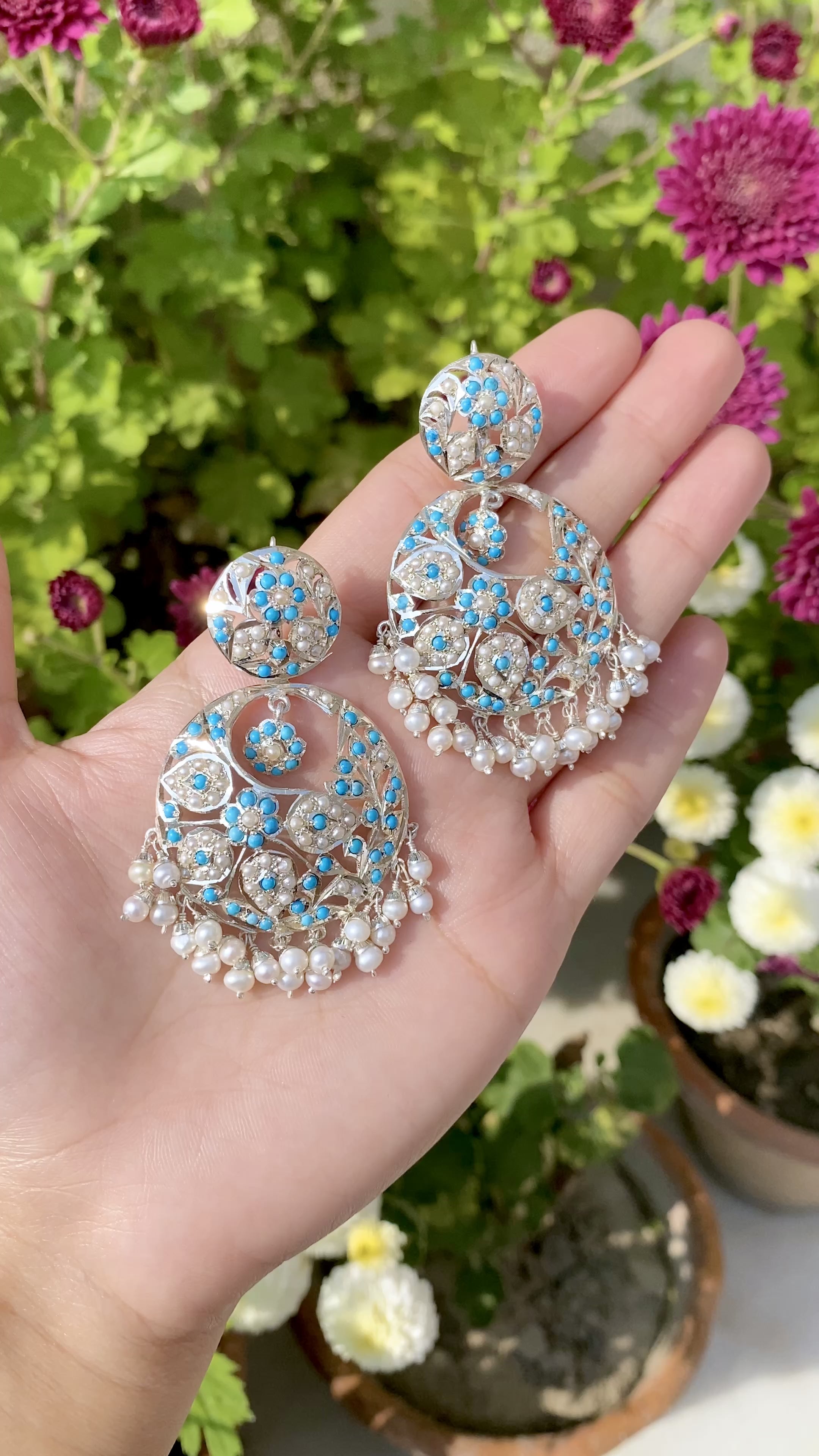 चांदी पर फिरोजा चांदबाली | कश्मीरी झुमके डिजाइन SER 053