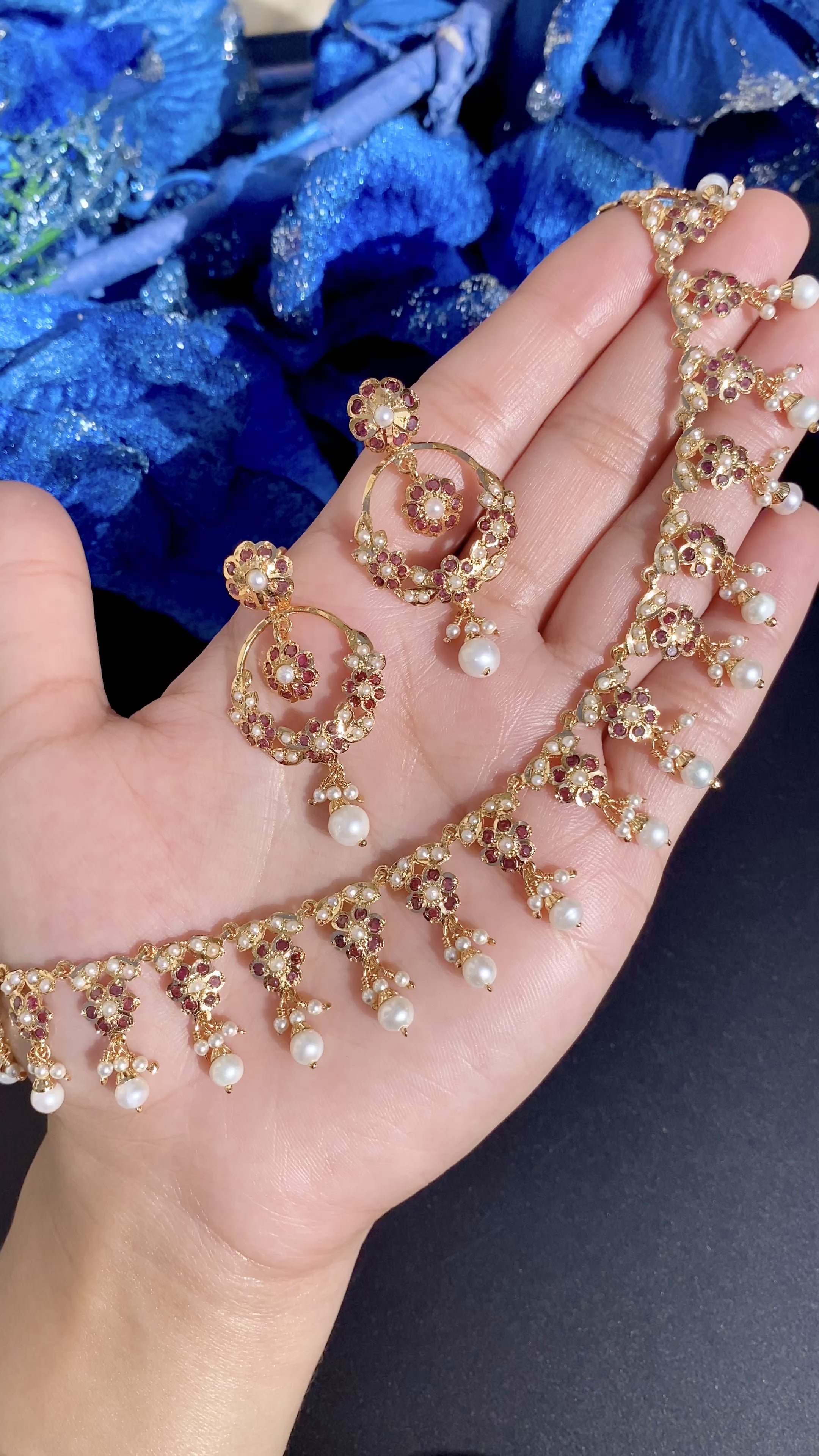 गार्नेट और मोती जड़ाऊ सेट | महिलाओं के लिए नाजुक और सुंदर सेट NS 302