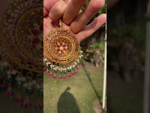 इसमें एक बड़े आकार का 22k सोने का जड़ाऊ दुल्हन का मांग टीका शामिल है। टीके में चेन शामिल है और इसका वजन 23.8 ग्राम है जिसमें लटकते रूबी पन्ना और मोती की मालाओं का 3.95 ग्राम शामिल है।