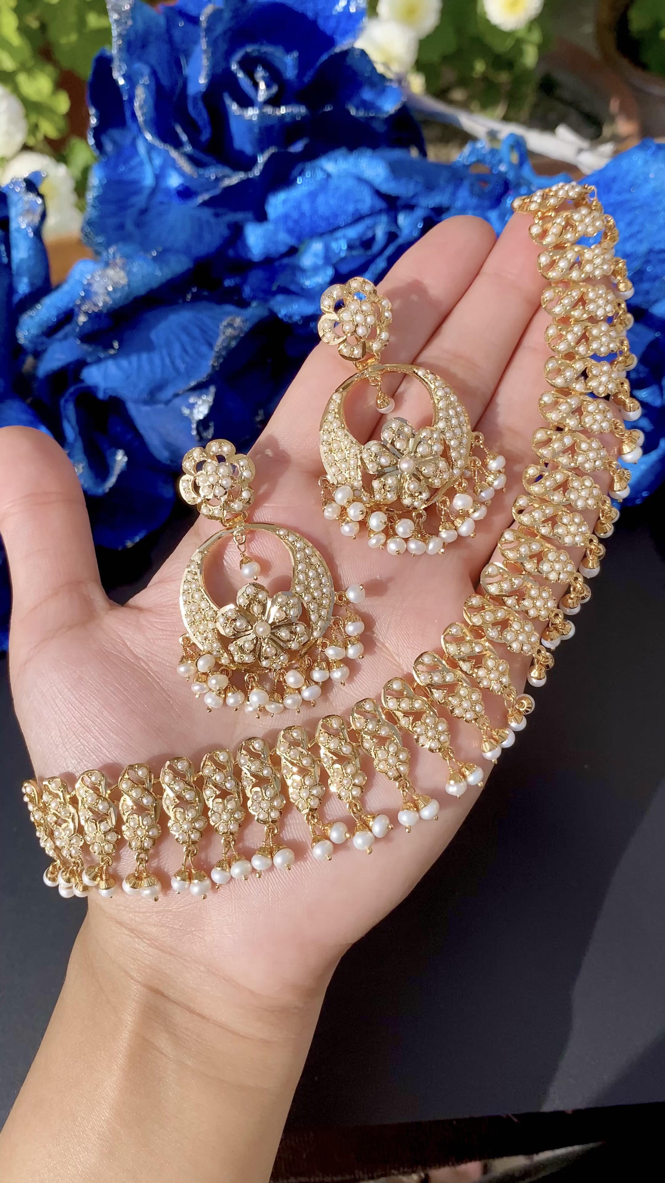सिल्वर भारतीय आभूषण सेट | 22k गोल्ड प्लेटेड | असली मोती जड़ित NS 017
