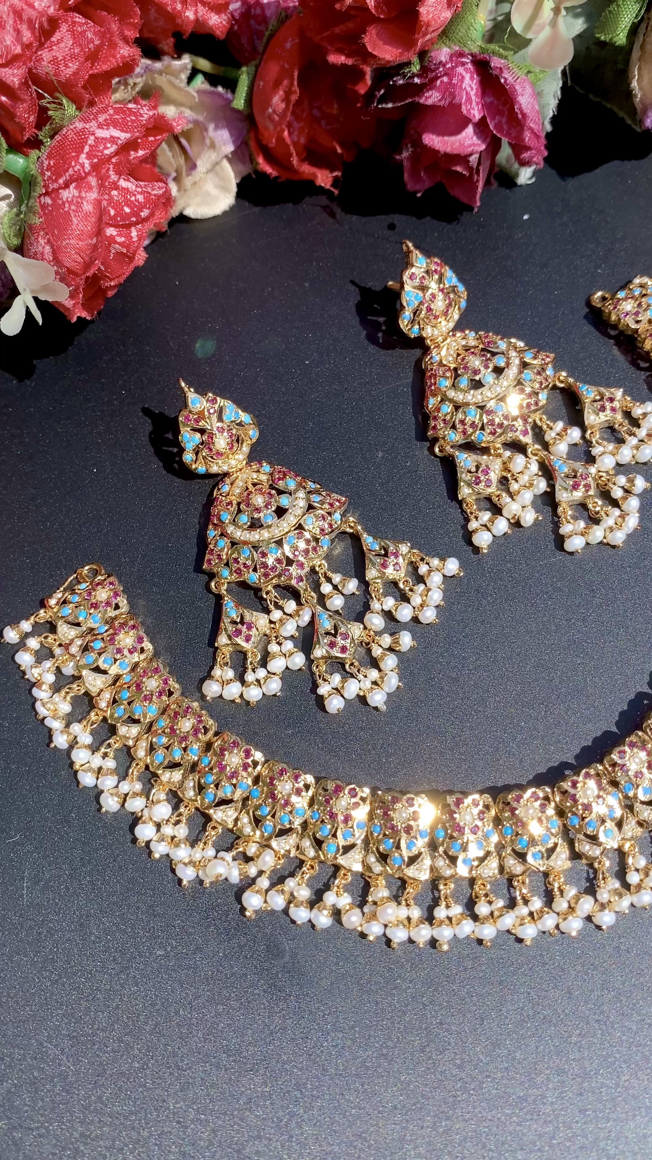 रूबी फेरोजा जड़ाऊ सेट | सुरुचिपूर्ण और उत्तम दर्जे का भारतीय आभूषण NS 301