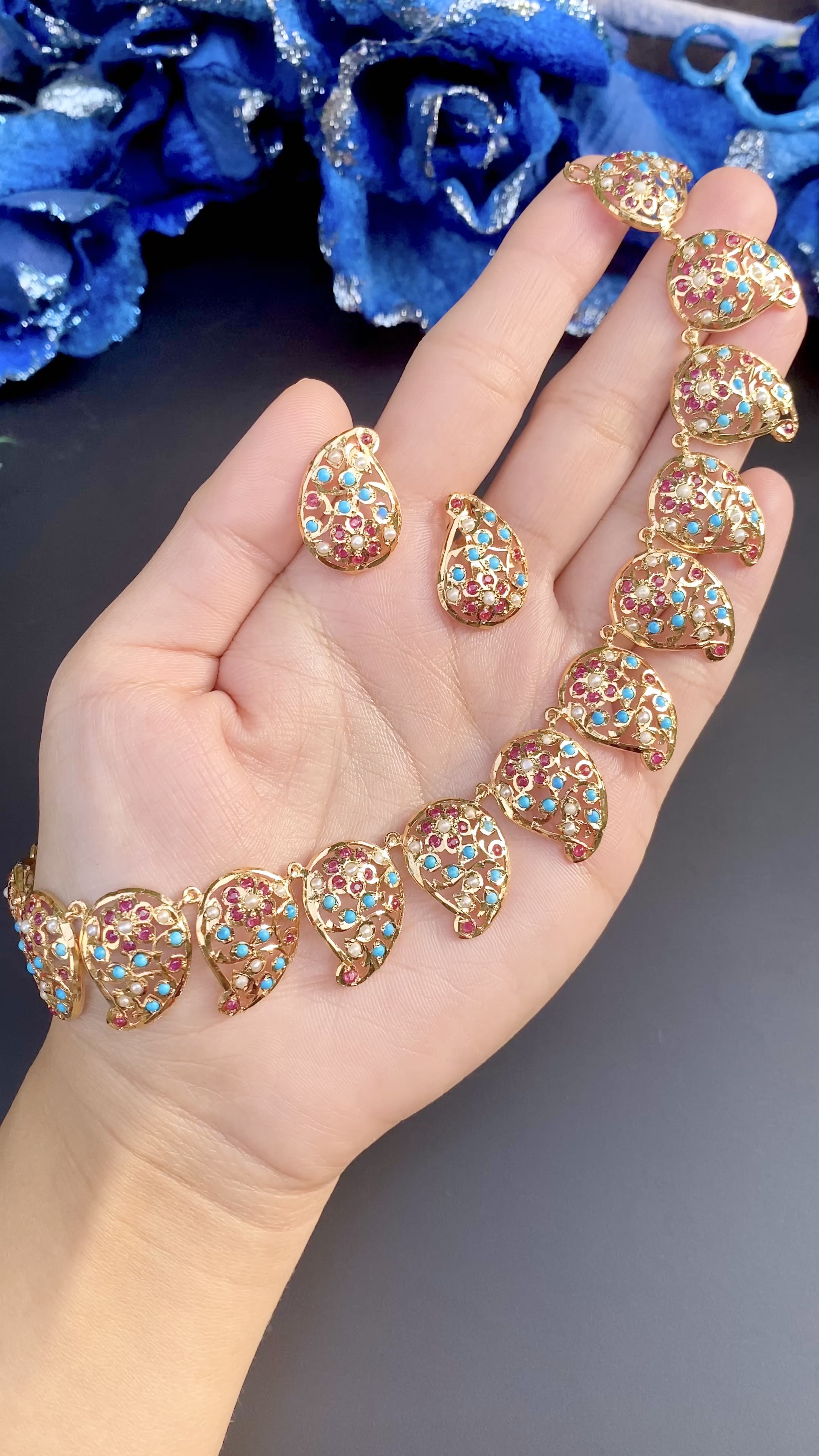 पैस्ले नेकलेस सेट | गोल्ड प्लेटेड स्टर्लिंग सिल्वर | अनोखे रंग NS 244