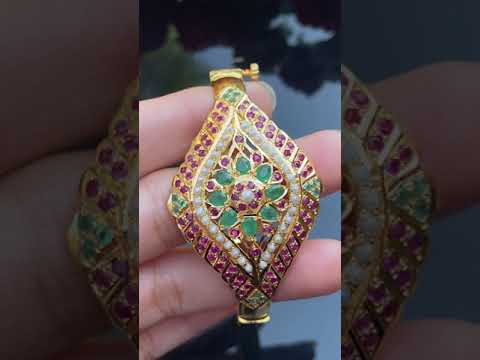 इसमें 22k सोने में प्राकृतिक माणिक, पन्ना और मोती जड़े हुए एक बेहतरीन हस्तनिर्मित ब्रेसलेट शामिल है। इस पीस का हर इंच अनोखा और शानदार है, जो एक कालातीत डिज़ाइन का दावा करता है जो निश्चित रूप से आपके लुक में ग्लैमर का एक संकेत जोड़ देगा।