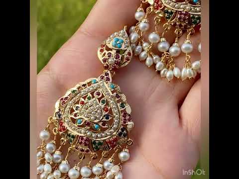 सोने की परत चढ़ी और 92.5 चांदी से बनी, नवरतन बालियों को ताजे पानी के मोतियों और असली और सिंथेटिक नवरतन पत्थरों के मिश्रण से सजाया गया है।