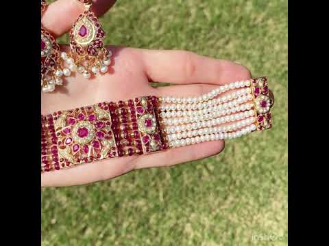 925 स्टर्लिंग सिल्वर में सटीकता के साथ तैयार किए गए इस बेहतरीन जड़ाऊ चोकर और इयररिंग सेट की भव्यता का आनंद लें। अपने बेहतरीन आभूषणों के संग्रह में इस कालातीत जोड़ के साथ एक स्टेटमेंट बनाएं। सेटिंग में लगे पत्थर कीमती ताजे पानी के मोती और रूबी जैसे दिखने वाले सिंथेटिक लाल पत्थर हैं। स्ट्रिंग और हैंगिंग में मोती ताजे पानी के मोती और असली माणिक हैं।