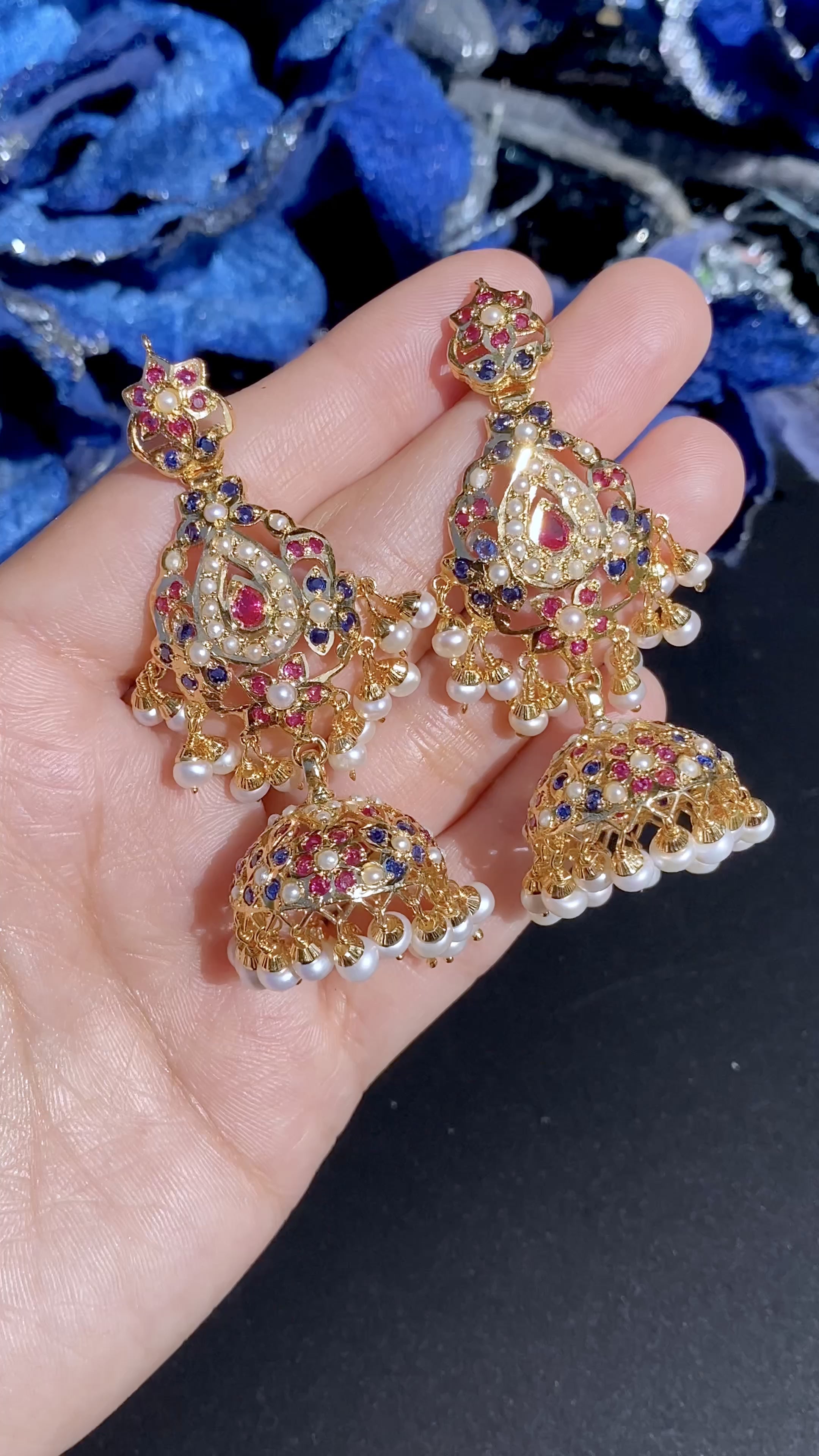 Pearl Jhumkas | Navratna Jhumka | Ruby Jhumka | Blue Sapphire Jhumkas | Feroza Jhumkas | Ruby Emerald Jhumkas | Long Jhumkas | Small Jhumkas | Large Jhumkas | Bridal Jhumka Earrings | Antique Jhumka Earrings | Hyderabadi Jhumkas | Punjabi Dandi Jhumkis