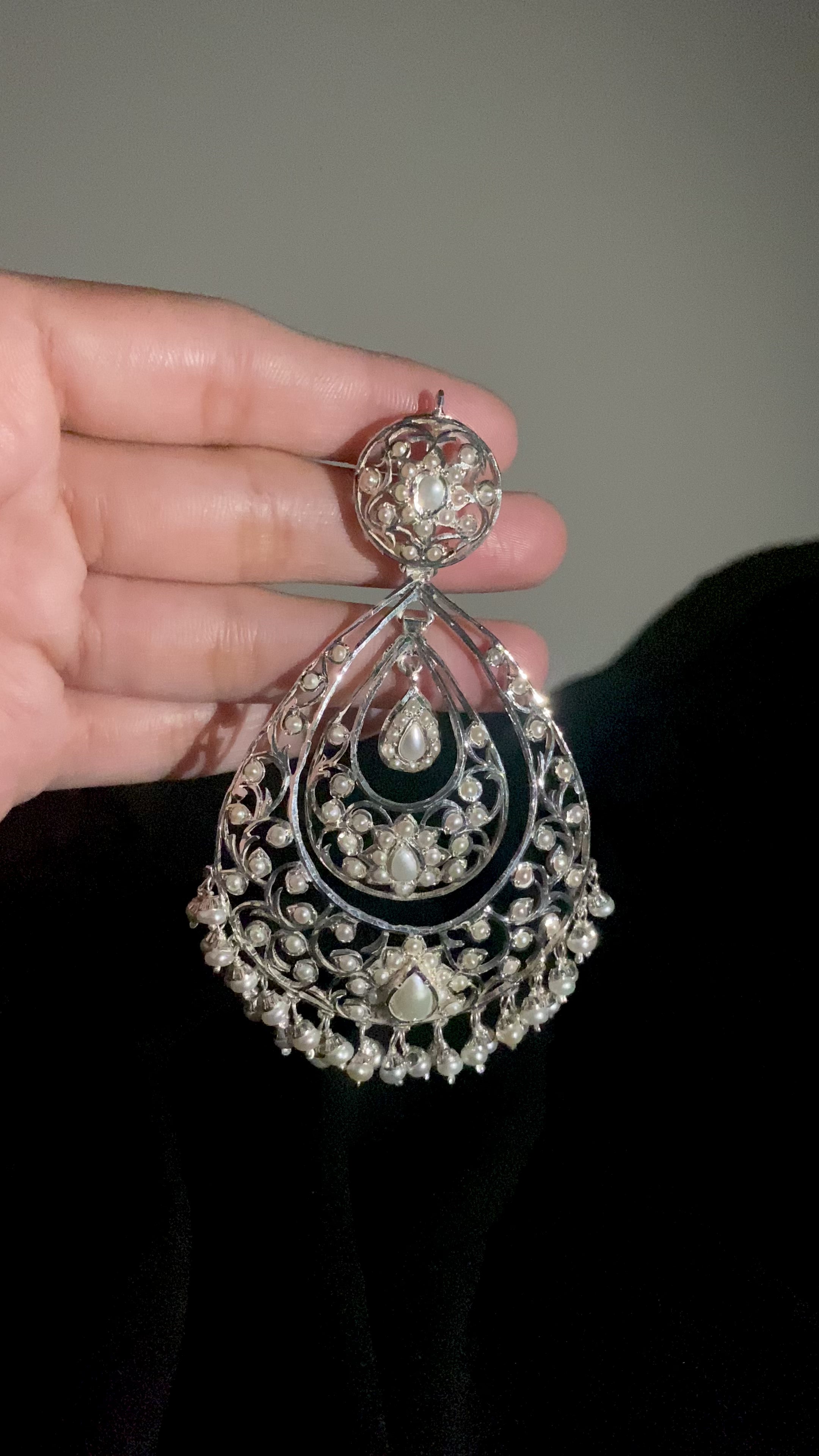 Edwardian silver earrings embellished with pearls These delicate and timeless indo-western design silver earrings will be a beautiful addition to any outfit. Delicate and classic, you'll love the look of these unique earrings.