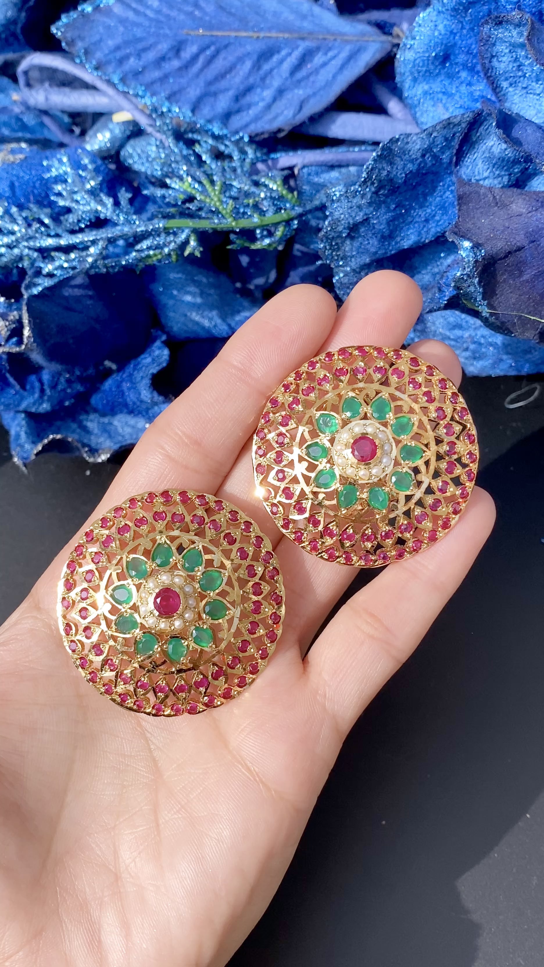 Large Jadau Studs | Statement Jadau Earrings | Exclusive Earrings Design ER 340