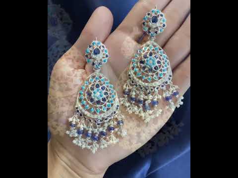 Indulge in the ultimate luxury with these intricate 92.5 silver earrings. Adorned with precious freshwater pearls, vibrant turquoises, and stunning blue sapphire like blue stones, these earrings are an exquisite addition to any jewelry collection. The perfect combination of elegance and opulence, these earrings will elevate any outfit, making you feel like royalty. Don't just wear jewelry, make a statement with these exclusive bohemian danglers designed for women who appreciate the finer things in life.