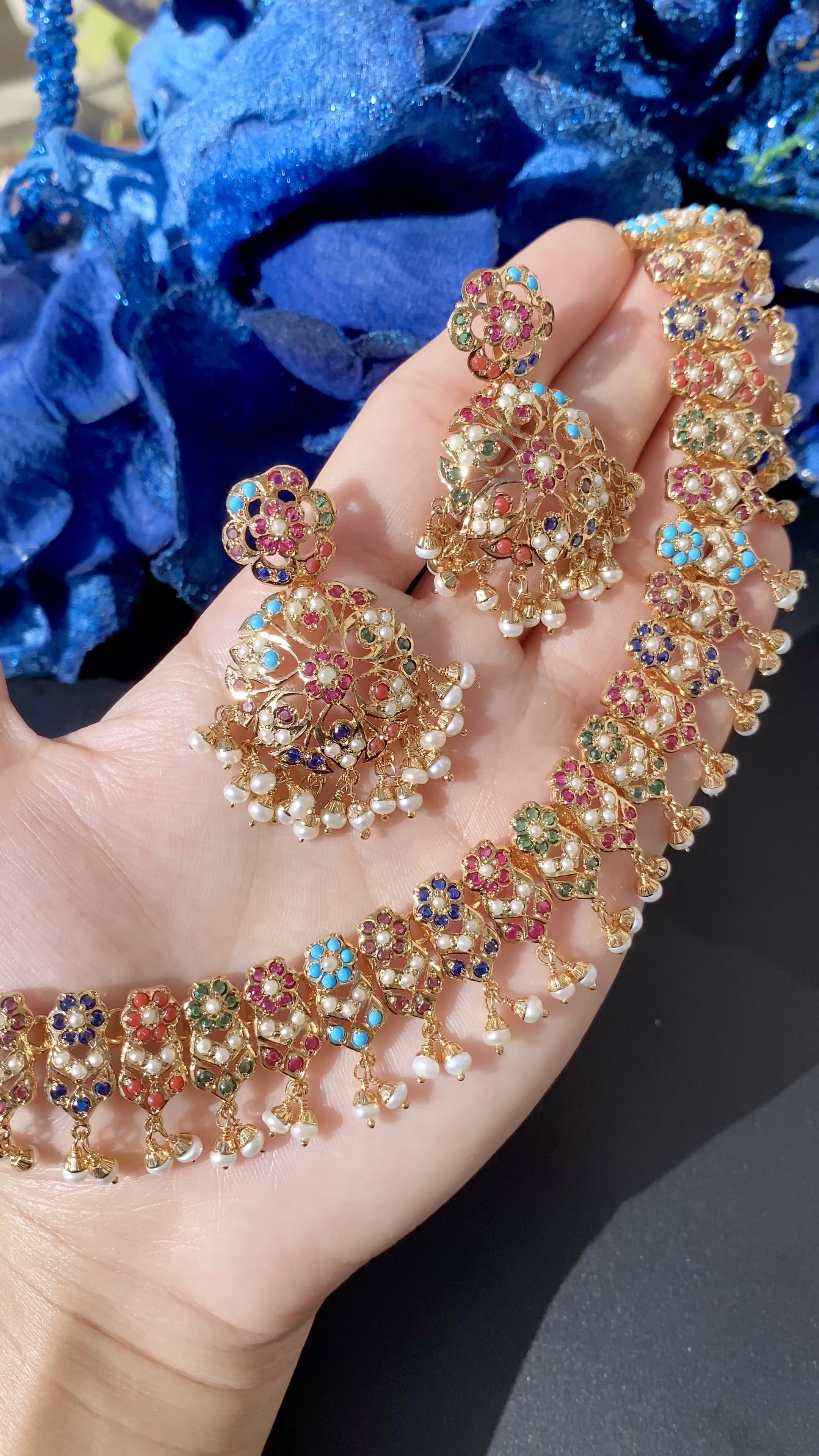 Evergreen Navratna Necklace Set | Traditional Jadau Necklace Set NS 243