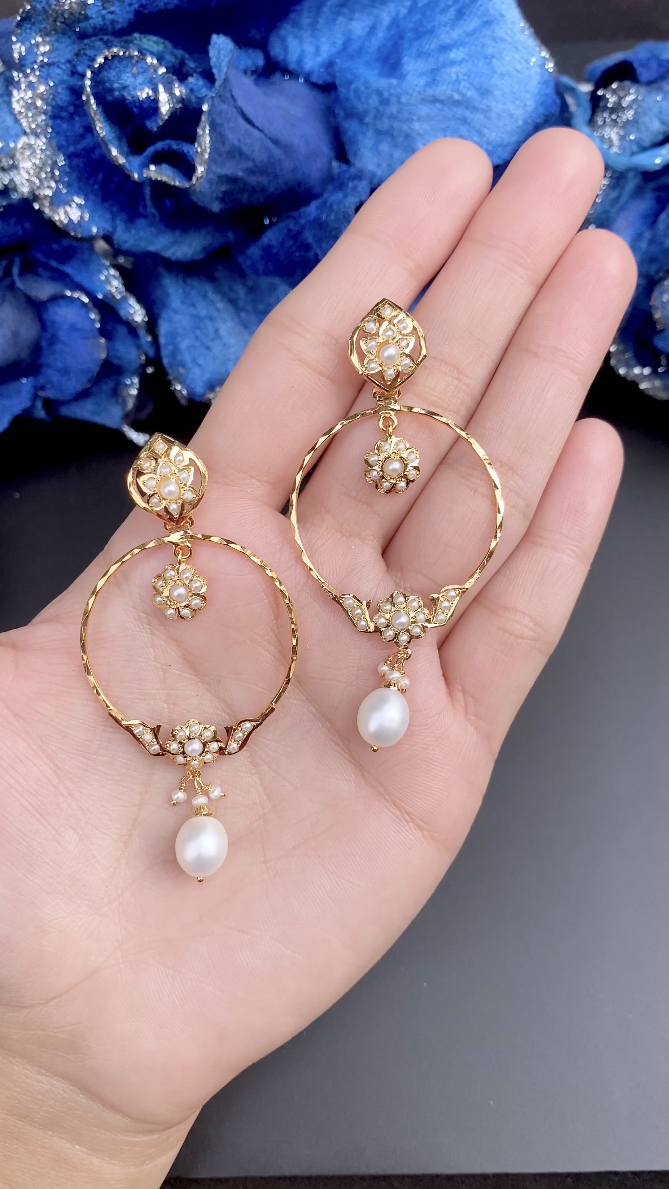 Dainty Hoop Pearl Earrings | Freshwater Pearls Indian Chandbali | For Girls ER 332