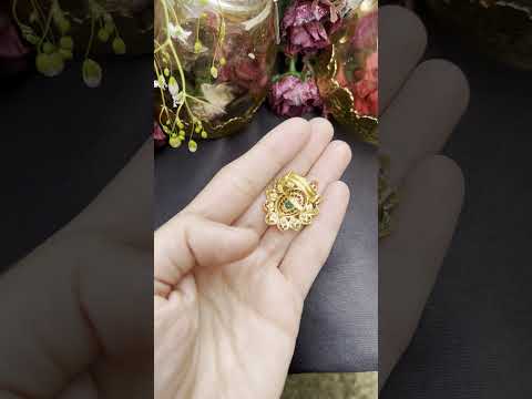 Featuring a fine ladies cocktail ring for all occassions in 22k gold embellished with precious emeralds, rubies and pearls. The ring weighs 6.6 gms