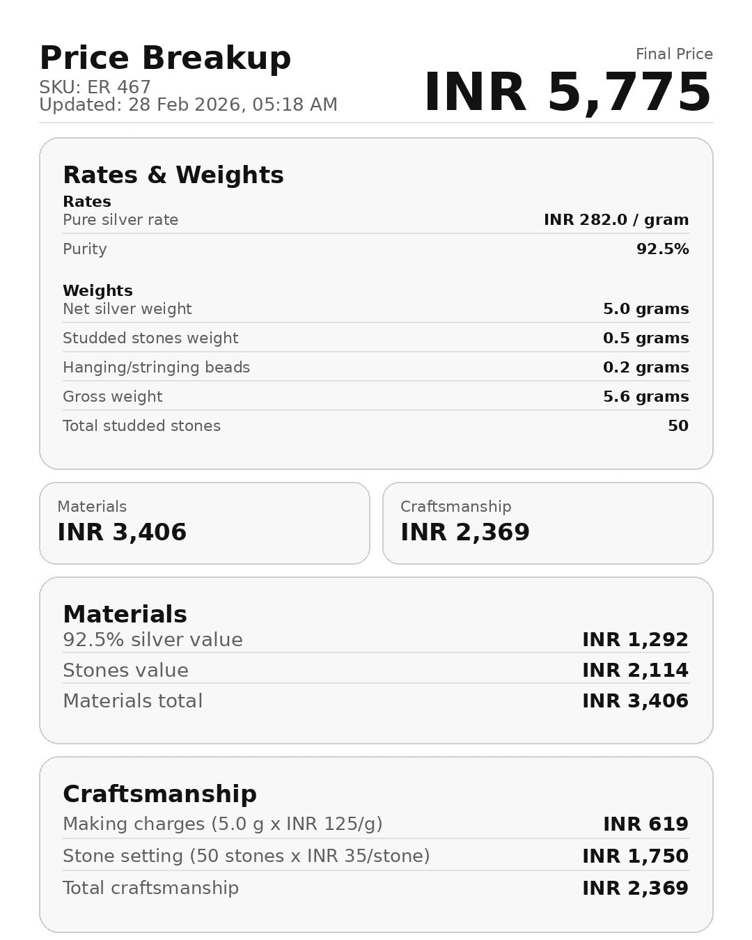 We choose sterling silver as the preferred base metal for two reasons only : No Allergies or Health Hazards: Sterling silver is fairly chemical inert. Physical exposure to 92.5% silver jewelry i...