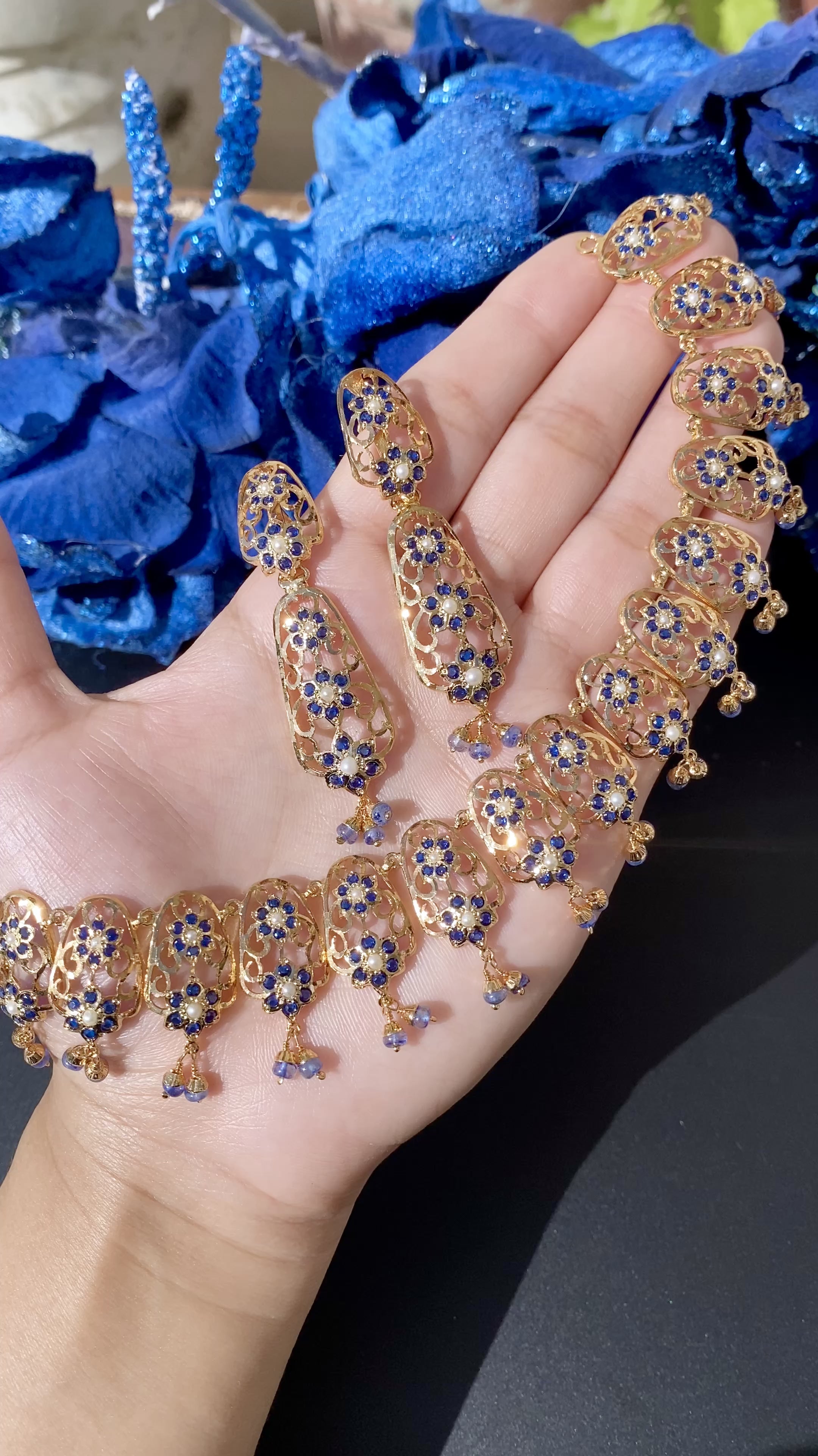 Sapphire Pearl Necklace Set | Classy Jadau Jewellery | NS 245