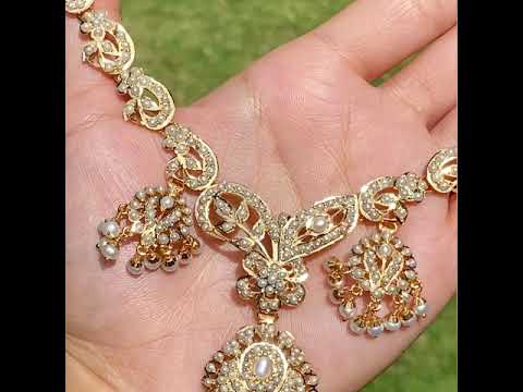 Gold Plated Pearl Necklace Set in Silver made with Traditional Amritsari Jadau Technique NS 065A