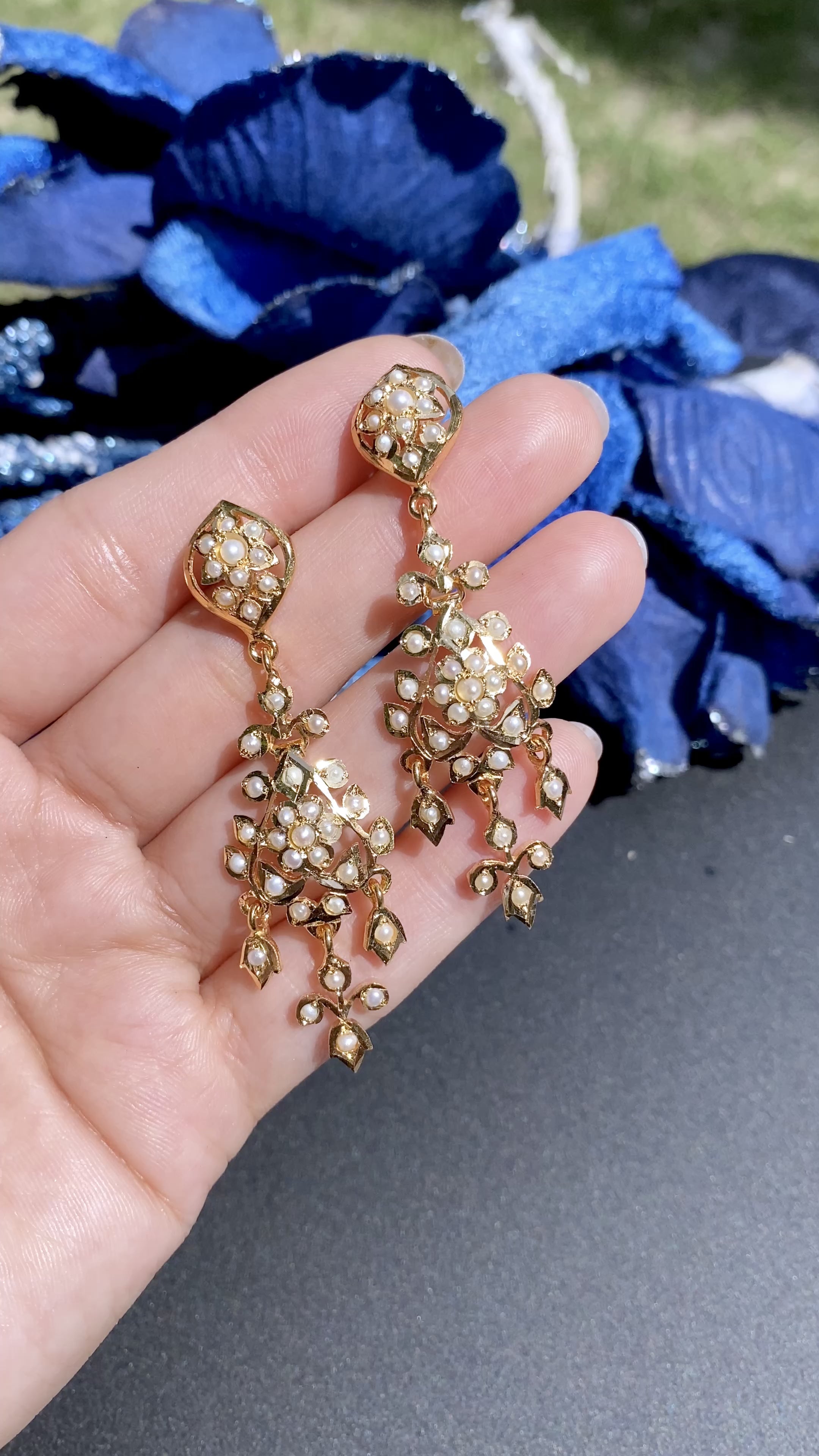 Elegant and timeless, these dainty pearl danglers made on gold plated silver add a touch of sophistication to any outfit. The perfect way to elevate your style and make a statement.
