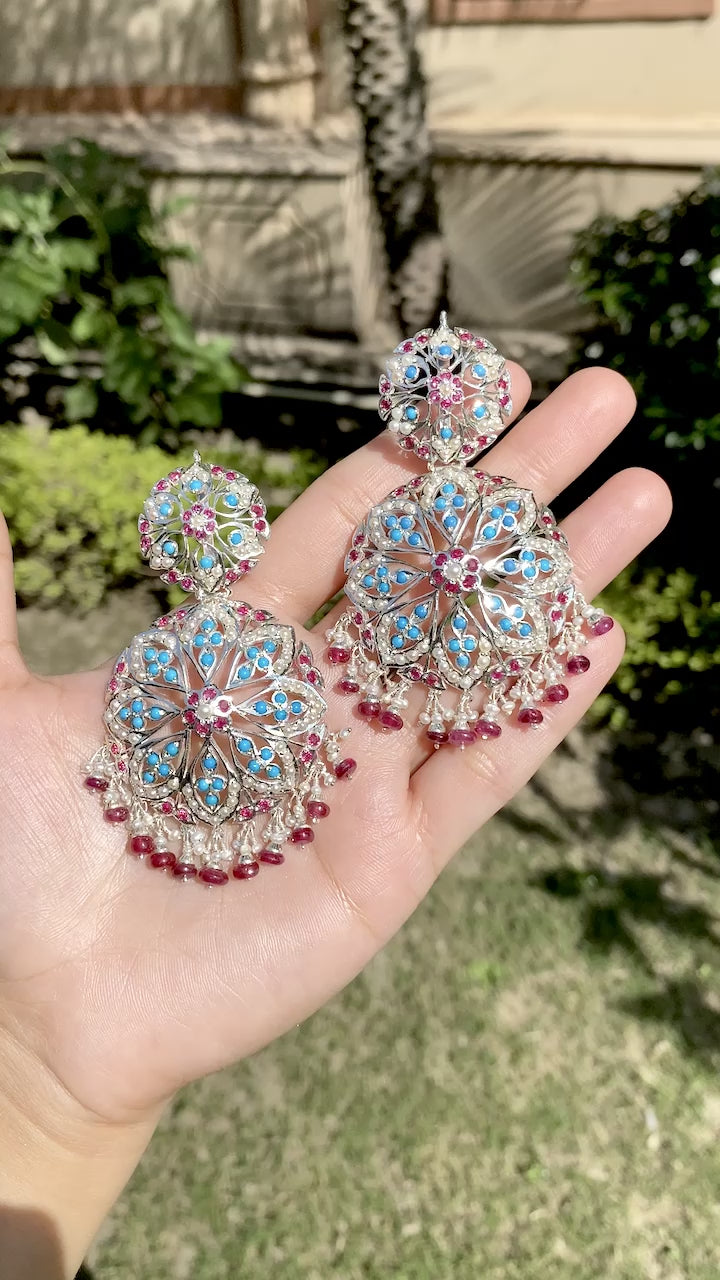 ఫ్యూజన్ సిల్వర్ చెవిపోగులు | పెర్ల్-రూబీ-టర్కోయిస్ SER 006