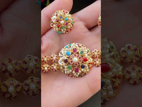ఫీచర్ చేయబడినది 22k బంగారు చోకర్ నెక్లెస్ నవరత్న రంగులలో సెట్ చేయబడింది, ఇది ఆధునిక మరియు సాంప్రదాయ కలయికలో రూపొందించబడింది. నెక్లెస్ బరువు 30.45 గ్రాములు (తీగలో 8.5 గ్రాములు కలిపి). స్టుడ్స్ బరువు 8.15 గ్రాములు.