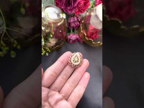 22 క్యారెట్ బంగారంలో తేలికపాటి జడౌ కాక్టెయిల్ రింగ్ ఫీచర్ చేయబడింది. ఈ ఉంగరం విలువైన కెంపులు, పచ్చలు మరియు ముత్యాలతో అమర్చబడి 5.10 గ్రాముల బరువు ఉంటుంది. ఈ ప్రత్యేకమైన నగలు ఏ రూపానికైనా చక్కదనం మరియు గ్లామర్ను జోడించడానికి సరైన మార్గం. ఎప్పటికీ ఫ్యాషన్ నుండి బయటపడని ఈ కలకాలం డిజైన్తో మీ శైలిని మెరుగుపరచుకోండి.