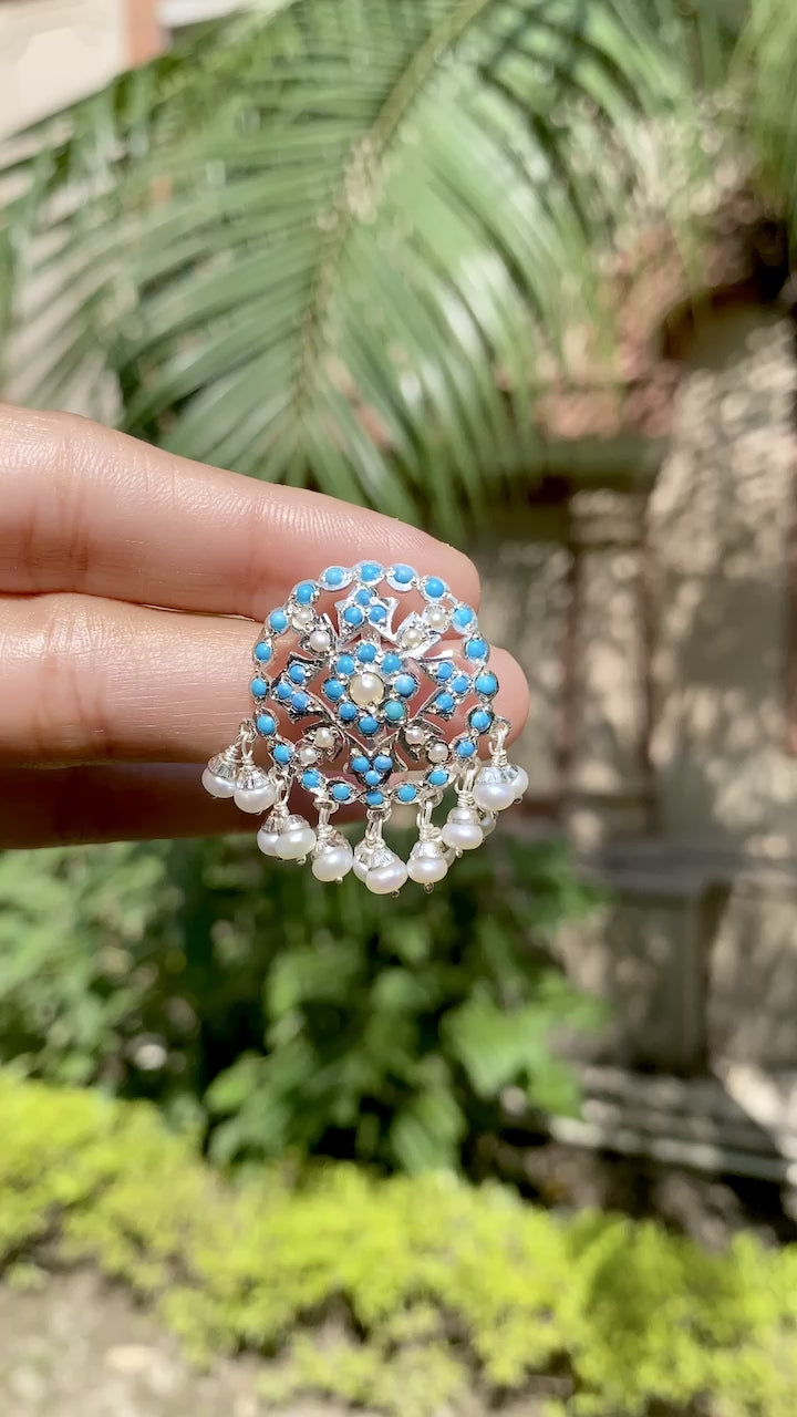 అధునాతన సిల్వర్ స్టడ్స్ | పెర్ల్ & టర్కోయిస్ | వైట్ షైనీ ఫినిష్ SER 029లో వెండి