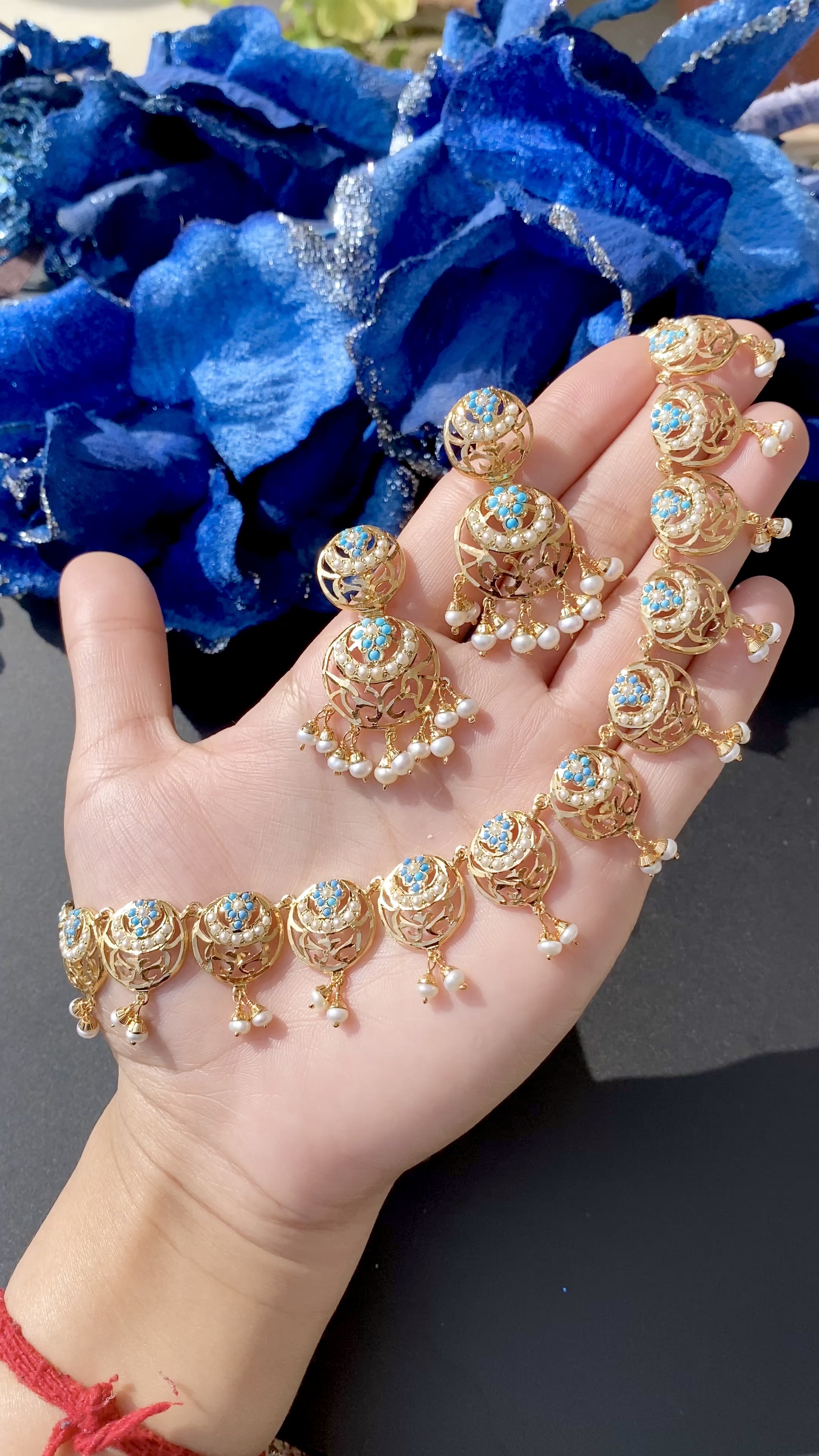 ఫిరోజా నెక్లెస్ సెట్ | బంగారు పూత జడౌ | స్టెర్లింగ్ సిల్వర్ జ్యువెలరీ NS 282A