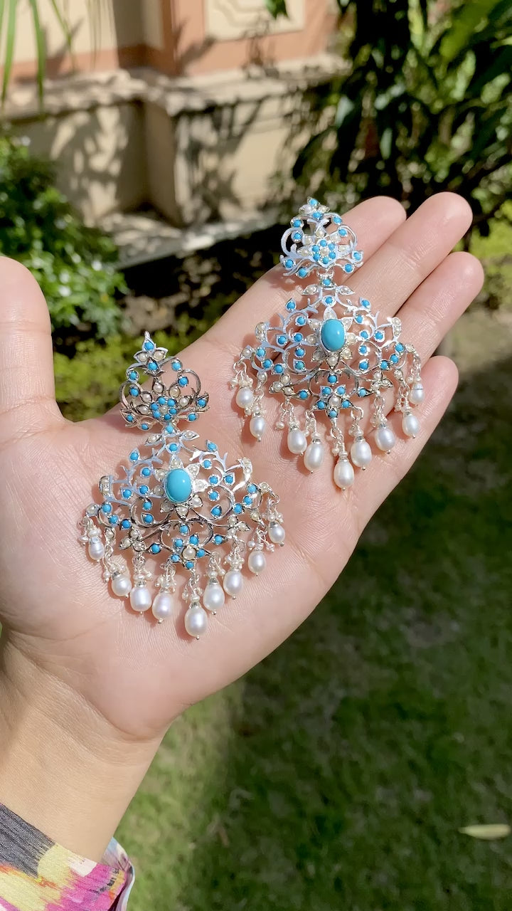స్టేట్మెంట్ టర్కోయిస్ చెవిపోగులు | స్టెర్లింగ్ సిల్వర్ | ఎడ్వర్డియన్ డిజైన్ SER 017